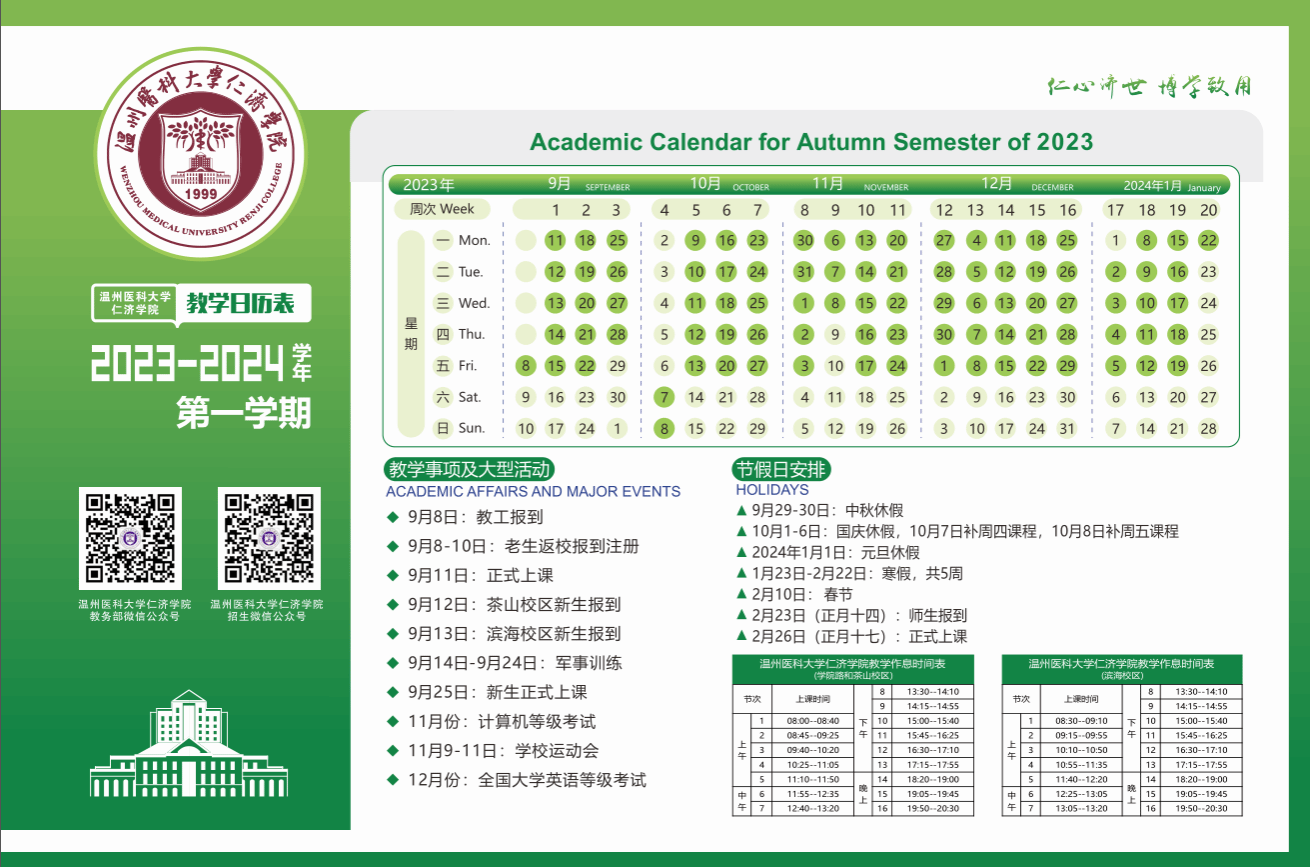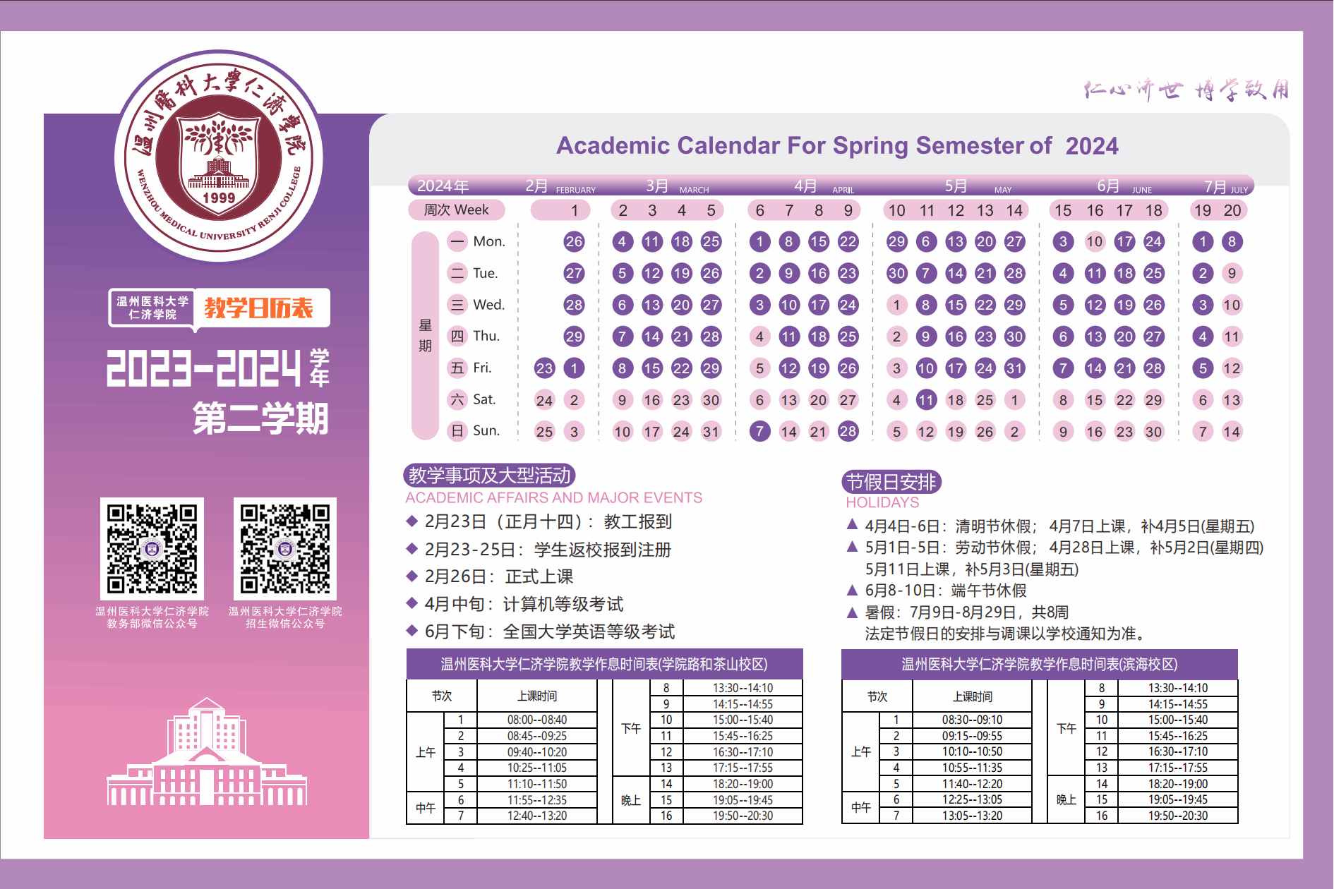 小黄书 2023-2024学年第一学期和第二学期教学日历表