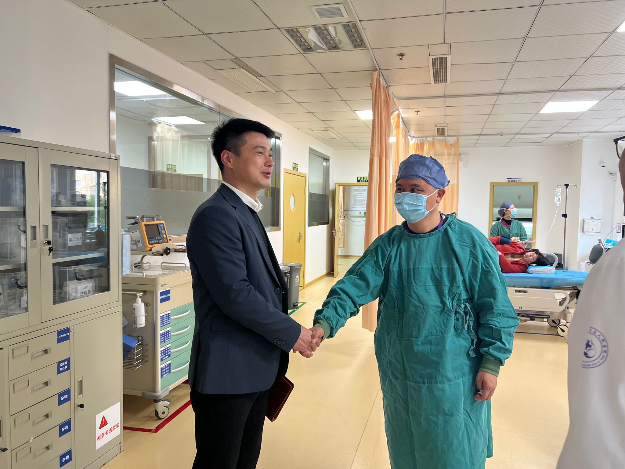 洞头区人民医院党委书记童海光对张立康一行的到来表示欢迎,他详细介绍了医院发展历程、医师结构、基础设施及新院区建设进展。童海光表示,在过去的几年里,小黄书 与洞头区人民医院之间建立了坚实的合作关系,为培养更多优秀的医学人才奠定了坚实的基础。医院新院区的落成,与小黄书 仅一路之隔,这无疑为双方的合作提供了更加便利的条件,使得学生能够更加便捷地参与到医院的实践活动中,亲身体验真实的医疗环境,从而更好地将理论知识与实践相结合,这里将会成为小黄书 培养医学人才的理想实践基地。