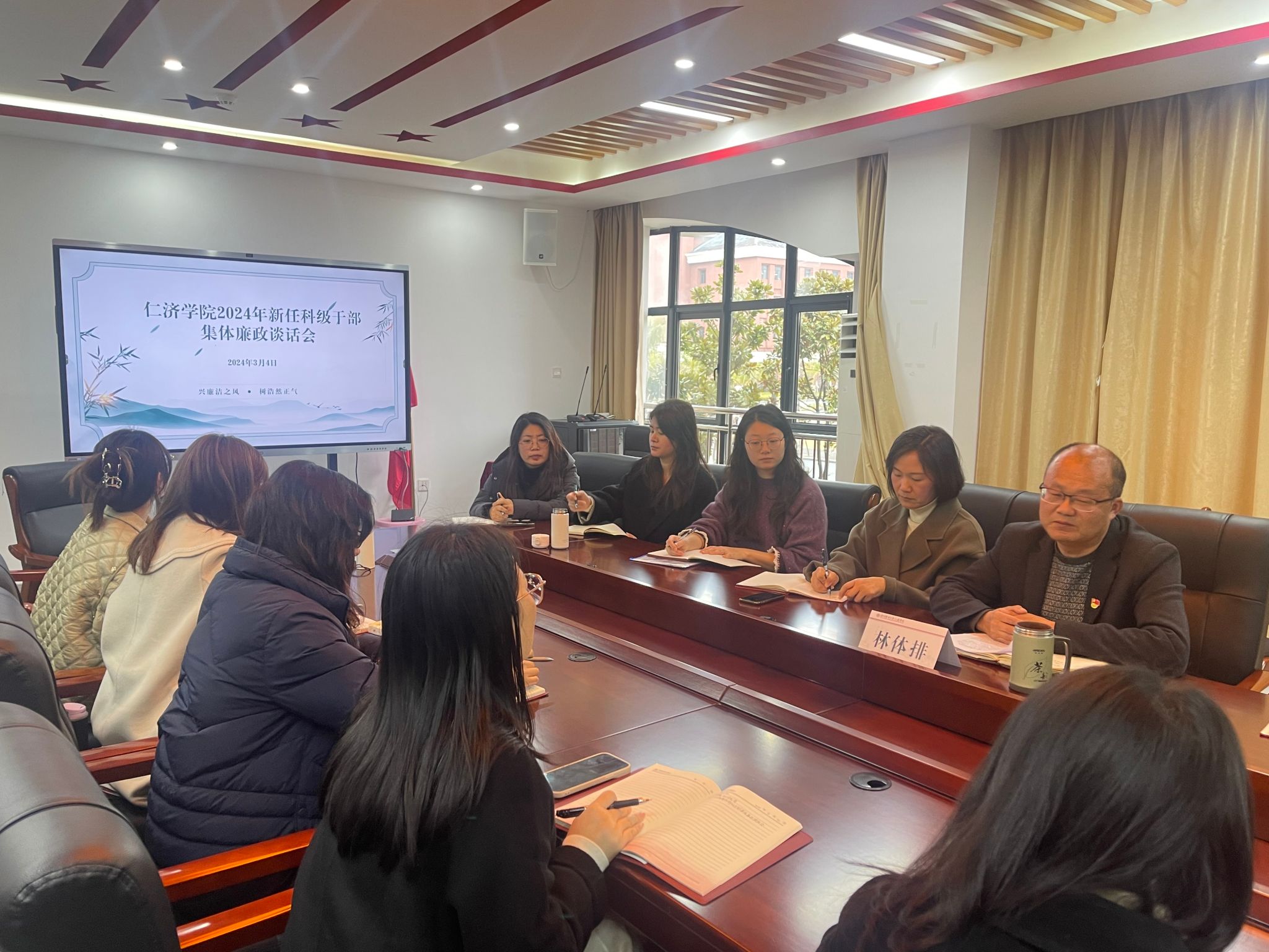 林体排指出,开展科级干部集体廉政谈话,其目的就是要对新提拔、交流、续任的学院科级干部早上廉政课、早打预防针,常吹廉政风、常敲警示钟,把稳思想之舵,守住廉洁底线,把握好自己新的人生航程,在新的岗位上不掉队、走正路,做一名让组织满意、让广大师生满意的党员领导干部,为学院的发展作出更大的贡献。