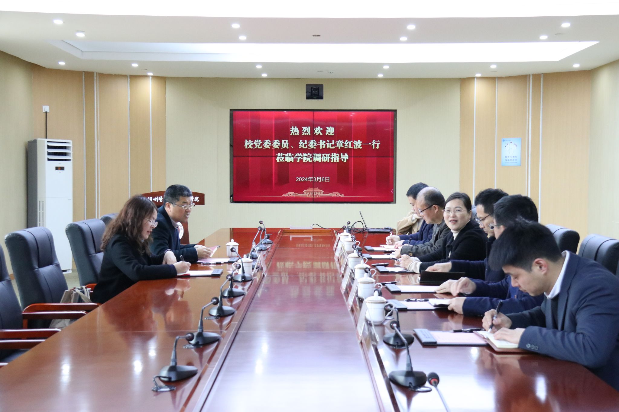 3月6日上午,校党委委员、纪委书记章红波,校纪委副书记、纪检监察室主任戴向龙莅临学院调研指导工作,深入了解学院发展情况。学院领导班子参加调研交流会。