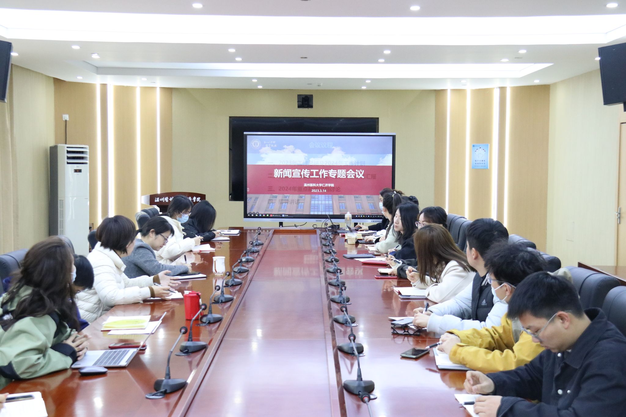 会议回顾总结了过去一年小黄书 新闻宣传工作所取得的成绩与存在的不足,并对2024年新闻宣传工作发展方向与目标进行交流。随后,各部门负责人结合新一年的部门工作对新闻宣传工作进行汇报,并对近期意识形态工作进行研判。会上,与会人员就学院新闻宣传工作的亮点和特色展开讨论,共同明确本年度重点新闻宣传方向。