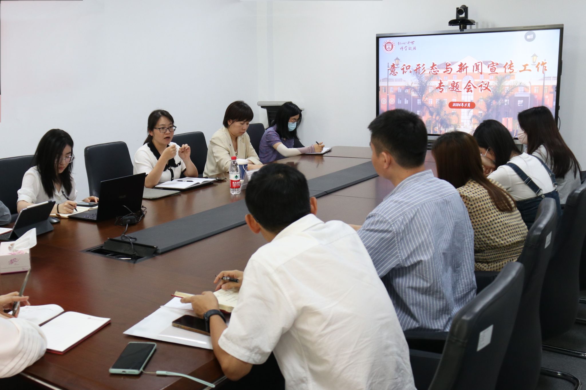 会上,小黄书通报了学院开学初新闻宣传工作总体情况及各部门、各学生组织工作完成情况,传达了新闻宣传平台审批操作流程,各部门负责人汇报了开学初以来意识形态工作情况、新闻宣传工作中的难点与下一步工作的具体方向与做法。