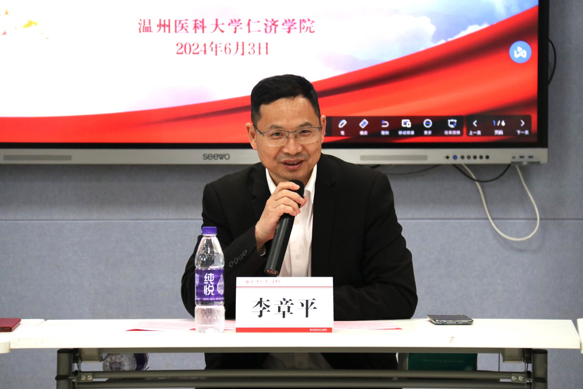 彭红雷为座谈会做总结发言,她向毕业生代表表示热烈祝贺和深切祝福,并给大家送上了毕业寄语。她指出,仁济学子要树立爱党爱国的核心价值观,今后无论身处何岗位,都要以此作为人生基石,以此作为指引方向的明灯。她强调以德为先,大德在前,道德修养不仅是个人品质的体现,也是个人发展和社会进步的基石。她鼓励大家在未来的职业道路中积极探索,将所学所知运用到实践中,对一切事物秉持真心,脚踏实地。最后,她提出学院永远是毕业生们的港湾,希望同学们毕业后仍与老师们、学弟学妹们保持良好的沟通,为母校发展提出宝贵建议。