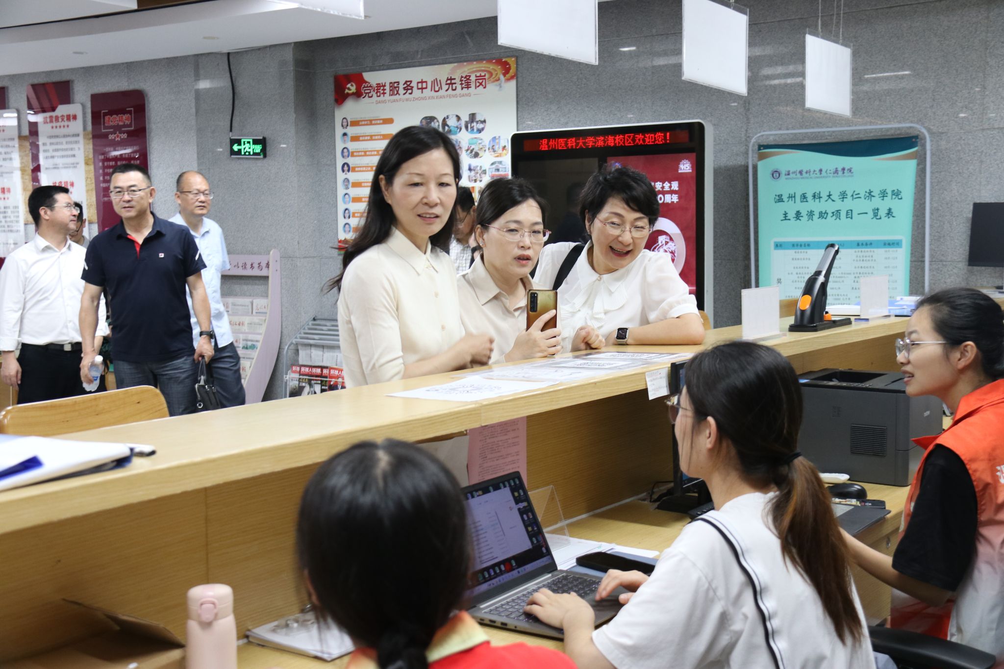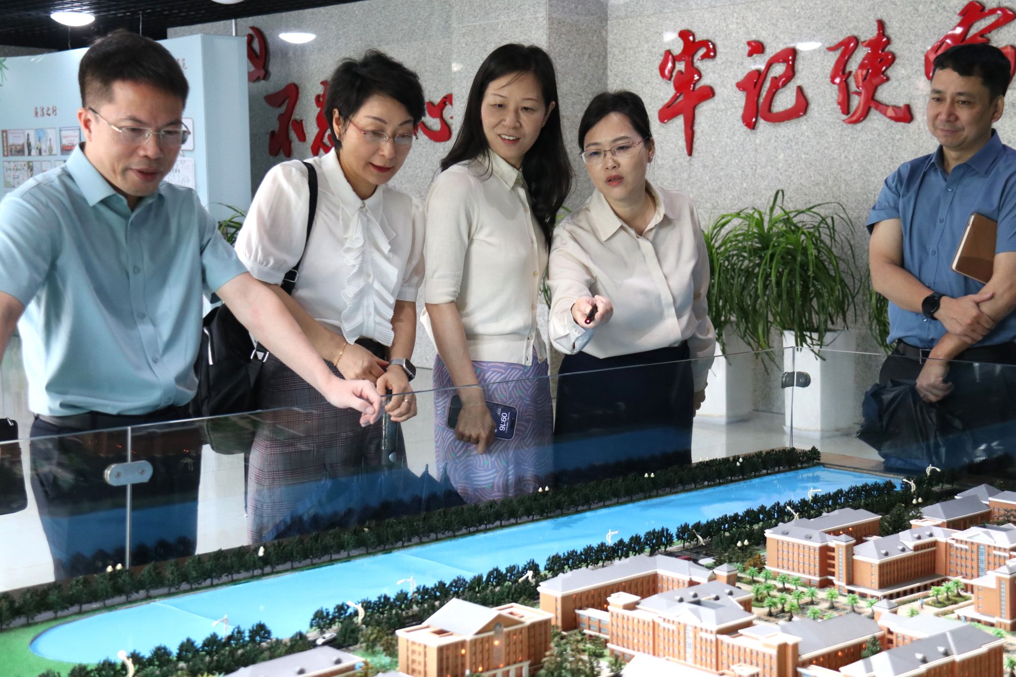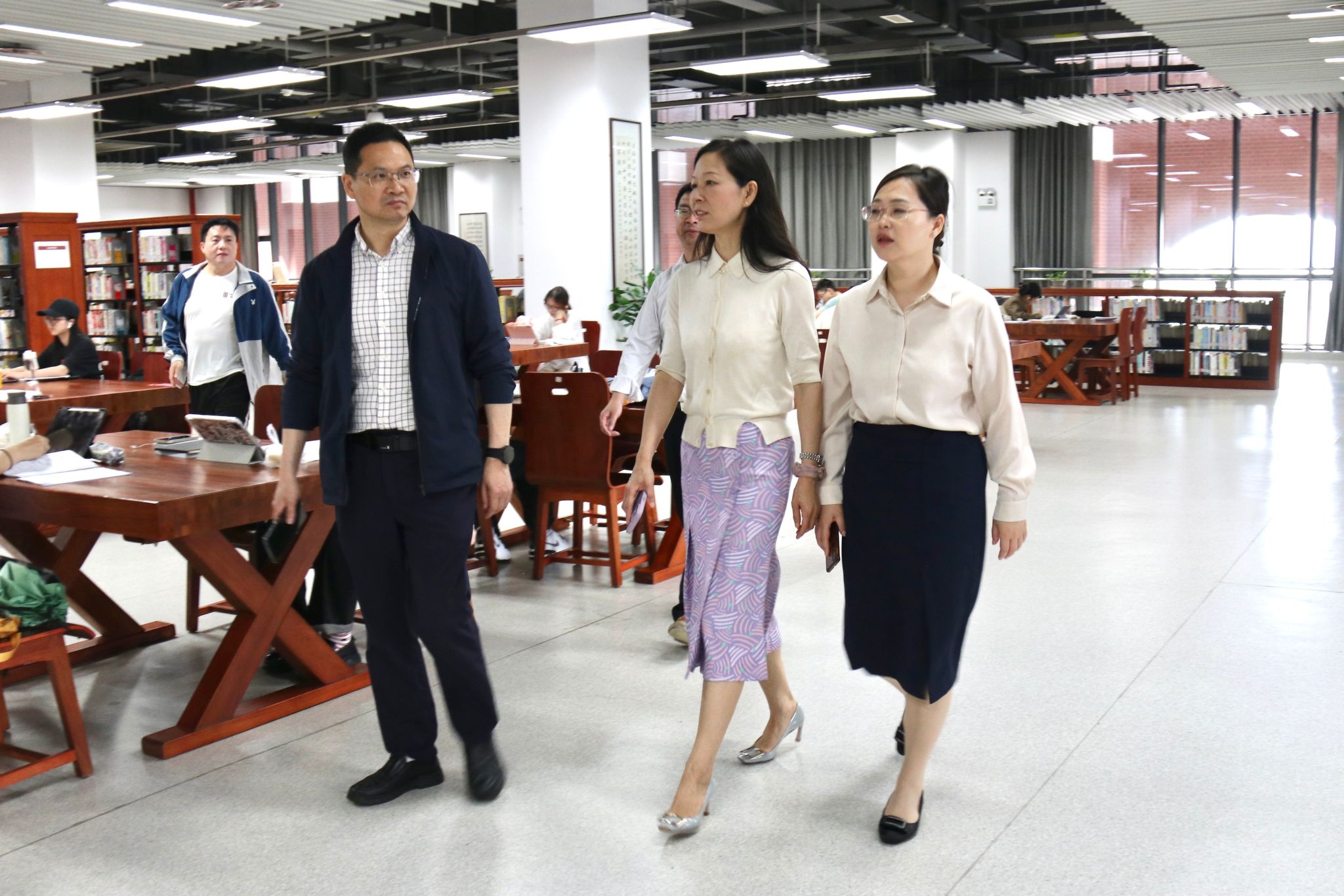 调研期间,朱雪波一行走访了学院党建文化长廊、党建服务中心、“我家书房”、学生宿舍、图书馆等。