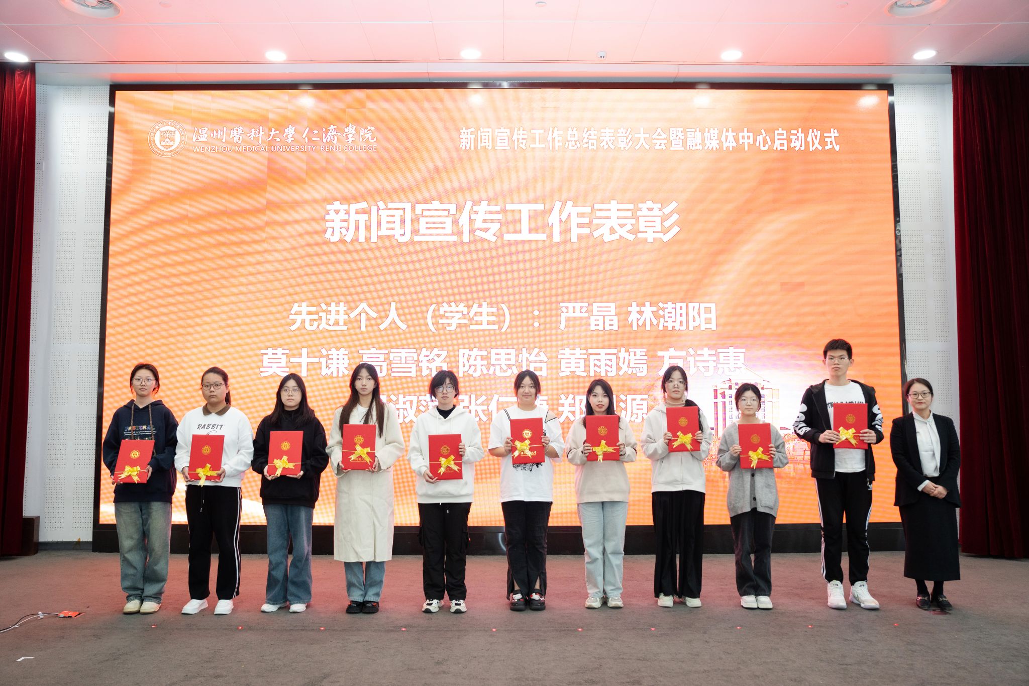 学院党委副书记姜旭英首先为过去一年中积极投身于学院的新闻宣传工作,为讲好仁济故事、发好青年声音作出重要贡献的新闻宣传工作先进个人(学生代表和教师代表)、先进学生组织以及先进集体进行颁奖。