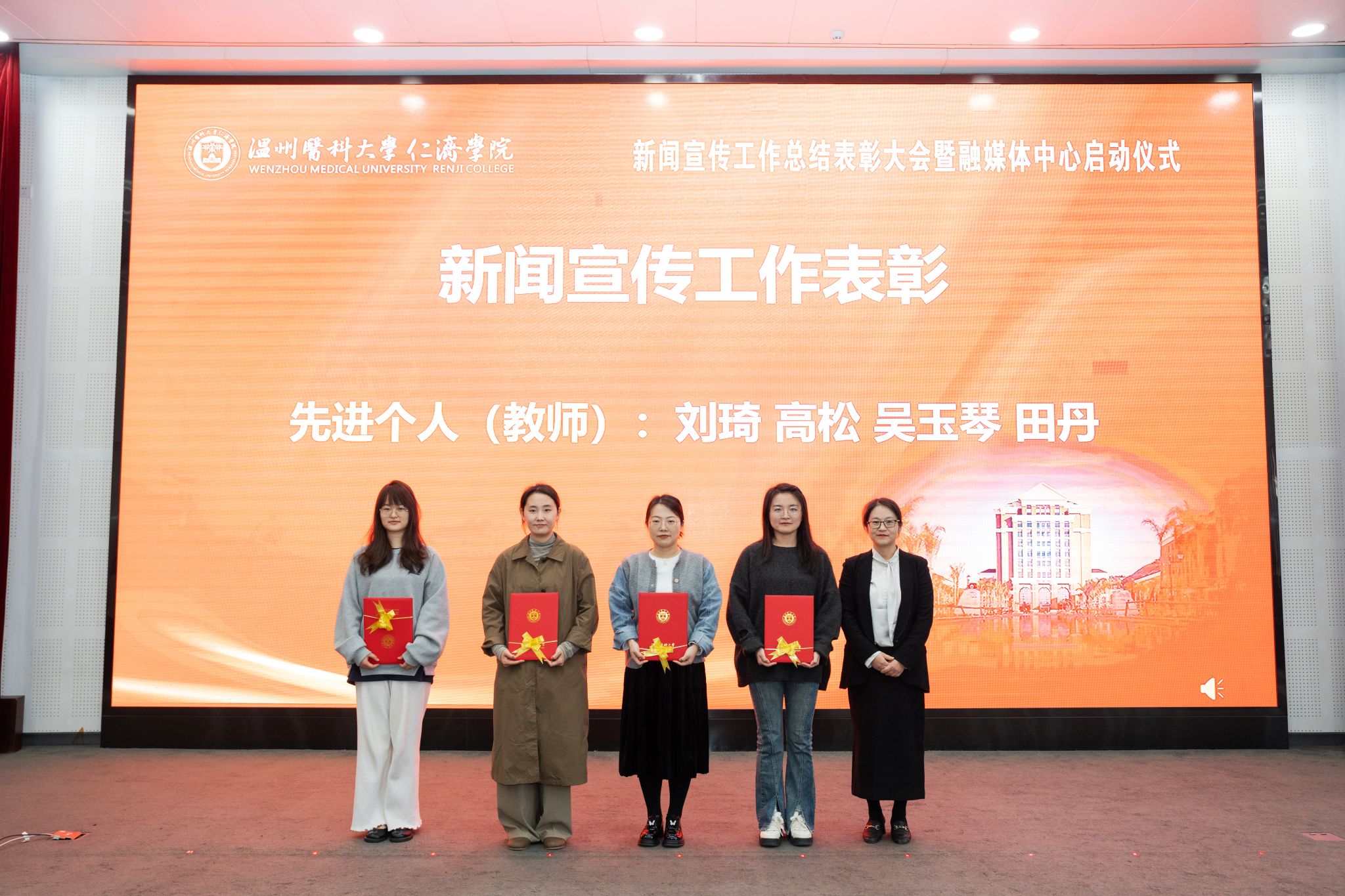 为切实做好新时代宣传思想文化工作,创新融媒体背景下校园新闻宣传工作的方式方法。11月29日下午,小黄书 新闻宣传工作总结表彰大会暨融媒体中心启动仪式于滨海校区仁心厅顺利举行。温州市新闻传媒中心广电总编室主任陈泰涨、温州广电集团有限公司常务副总经理郑雨辰、温州市新闻传媒中心融媒发展部副主任叶青及浙江日报、浙江教育报、温州日报、温州晚报、温州新闻客户端等十位资深媒体代表莅临此次仪式。小黄书 党委书记彭红雷、党委副书记姜旭英出席,学院300余名师生代表共同参与。仪式由学院办公室主任林瑾主持。
