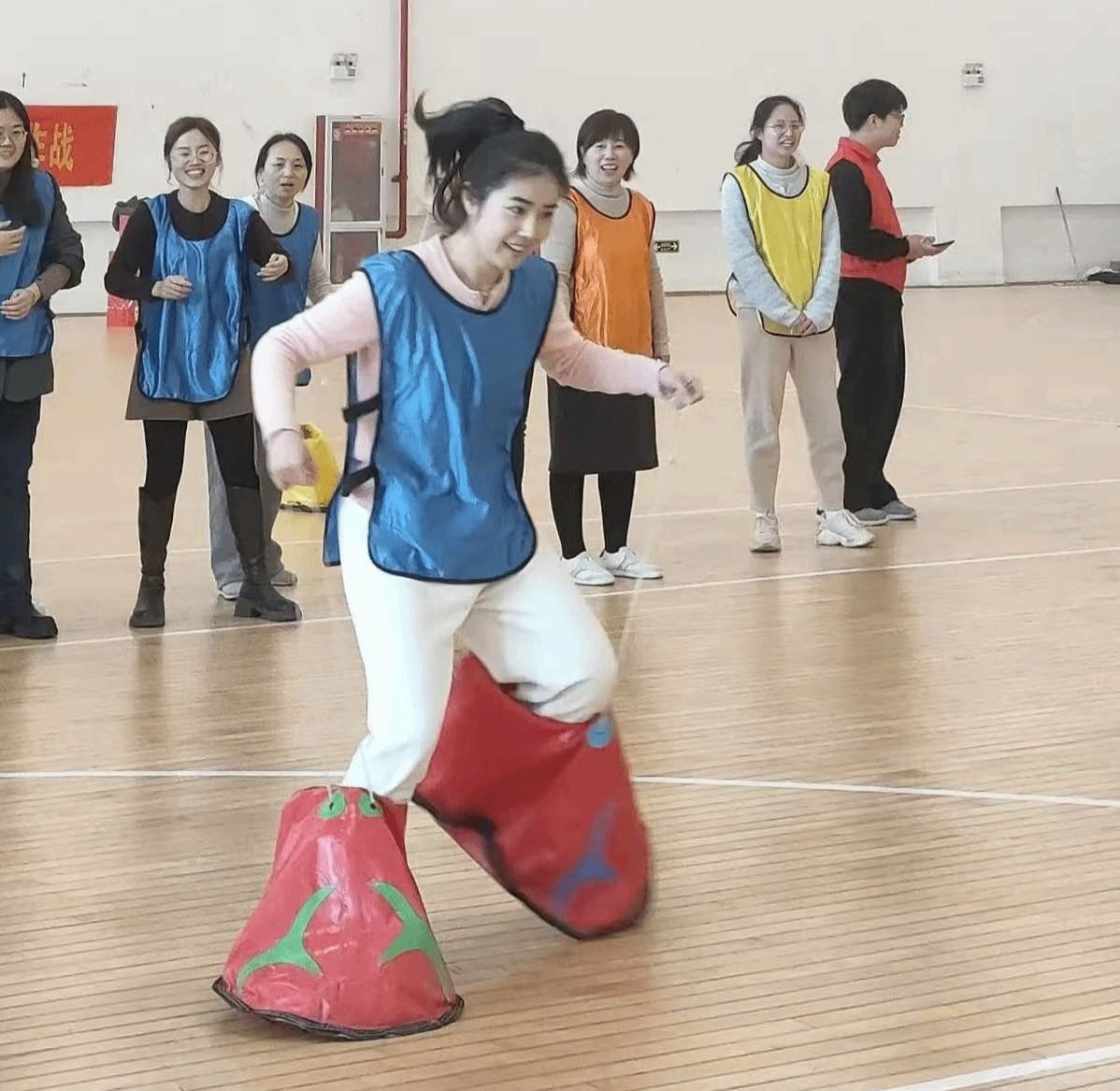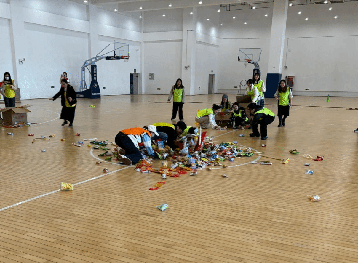 本次活动共设置了“无敌风火轮”、“一投即中”、“力拔山兮”、“踏步向前”等精彩纷呈的游戏,这些项目既考验了个人技巧,也体现了团队合作的重要性。比赛采取小组积分制,按照积分高低进入最终“零食大作战”环节。来自学院各职能部门的60余名教职工分别组成了5个小队参加比赛。教职工们秉承“友谊第一、比赛第二”的原则,相互激励、相互竞争,凭借团队力量、默契度与速度角逐高低。比赛中,参赛者们展现出了顽强拼搏的精神,将竞技与娱乐完美结合,现场气氛热烈,加油声、欢笑声此起彼伏,成为校园里一道温暖又活力满满的风景线。