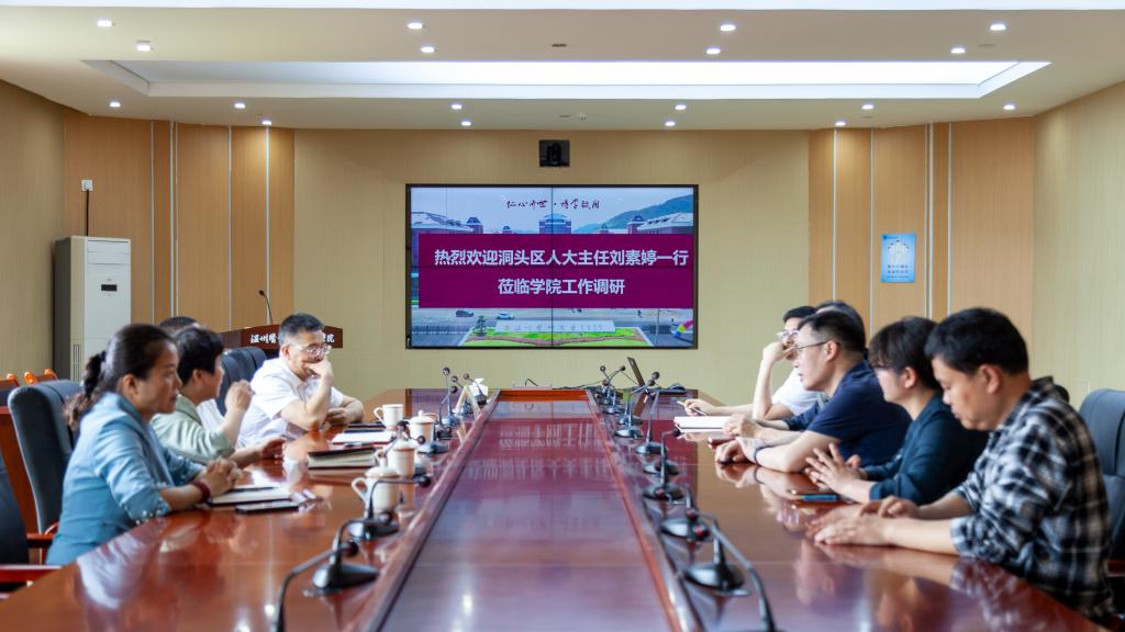 5月16日上午,洞头区人大常委会主任刘素婷、副主任陈后春,区人大科教文卫体工委纪玉华、区教育局长郭海辉一行来滨海校区进行走访调研学院发展情况。学院党委书记陈乃车、副院长朱晓东、党委副书记姜旭英及相关部门负责人陪同调研。