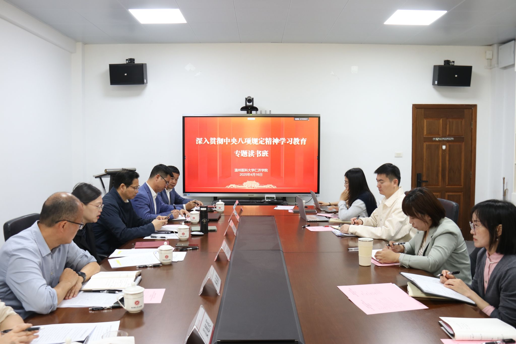 彭红雷指出,深入贯彻中央八项规定精神学习教育是巩固深化主题教育和党纪学习教育成果、纵深推进全面从严治党的重要举措,也是今年学院党建工作的重点任务。她强调,全院党员干部要提高政治站位,深刻认识作风建设的重要性与必要性,认真学习领会习近平总书记关于加强党的作风建设的重要论述,将学习教育成果切实转化为加快建设教育强国、创新浙江和助力学院事业发展的具体行动。