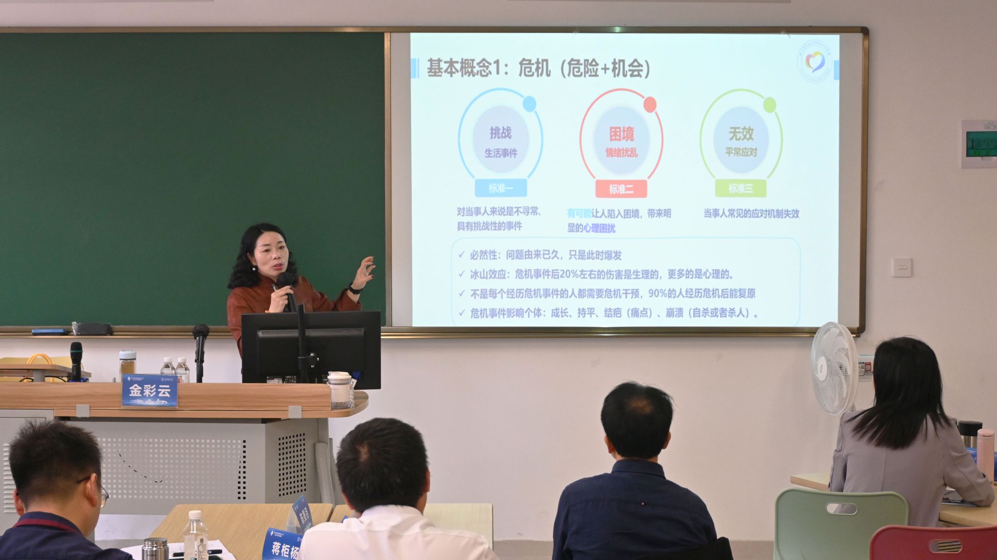 集中授课环节,专家就大学生心理障碍识别、校园危机干预、家校联动等专题授课并进行现场评估、模拟谈话及干预演练,同时结合自身多年一线学生工作经验与学员分享了诸多疑难案例和危机事件,通过呈现典型案例发生、发展及干预过程总结反思,理论与实践结合帮助学员树立危机识别意识、夯实能力之“基”,深入体会在心理问题日渐低龄化的大环境下个体、家庭、社会三者间的紧密联系,使学员们深切感受到心理专业知识干预能力对于守护校园平安和学生健康成长的重要意义。