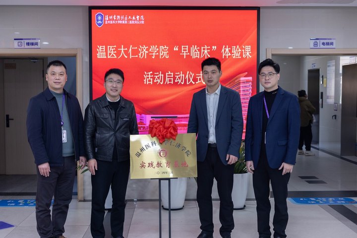 启动仪式现场,学校、区卫健局、区人民医院代表共同为实践教育基地揭牌。医院副院长郑海荣表示,将持续优化课程设计和服务管理,确保学生获得更为贴近实际的学习体验。区卫健局副局长叶稳稳指出,医院要以此为契机,加深校院合作,深化“以教促学、以学促教”的理念,不断加强师德师风建设,提升临床教学能力,推动人才培养质量的全面提升。