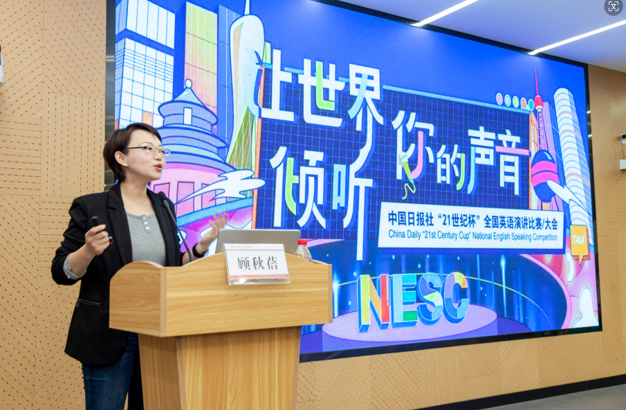 讲坛上,顾秋蓓以生动的语言、鲜活的事例,深入剖析了英语学习与演讲艺术之间的紧密联系。她详细阐述了如何巧妙运用演讲技巧提升英语表达能力,如何在英语学习过程中融入演讲的艺术元素,进而实现自我表达的有效沟通。顾老师的讲解深入浅出,充满实践价值,其轻松诙谐的表达方式不时引发在场师生的共鸣与欢笑。