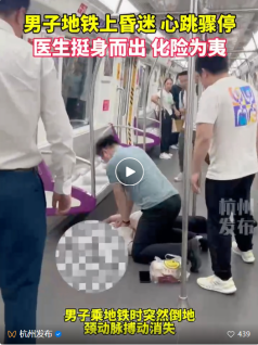 救人过程中,热心乘客联系上地铁工作人员,希望他们能在下一站提供帮助。很快,站点值班人员携带AED和医药箱赶到现场,附近派出所民警也随后赶来。在众人的合力救助下,倒地男子被送上救护车。车上急救医生感叹,“如果没有这黄金一分钟,这人恐怕凶多吉少”。