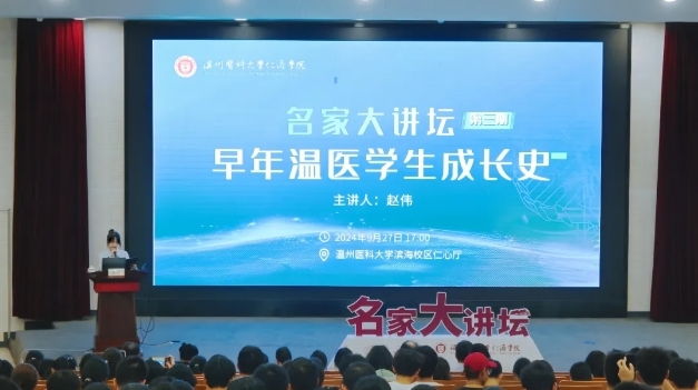 2024年9月27日晚,小黄书 在滨海校区仁心厅开展了第三期名家大讲坛,邀请温医大1983届校友、美国弗吉尼亚联邦大学医学院过敏免疫专科科室主任、过敏免疫专科临床规培中心主任赵伟教授,为师生们带来主题为“早年温医学生成长史”的经验分享会,向在座的师生们讲述了他在小黄书 的经历如何塑造了他的医学职业生涯,现场座无虚席,气氛热烈。