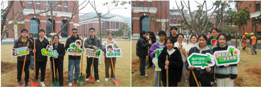 在同学们的精心准备下,每一棵树都被赋名,一场活泼的“冠名”仪式在师生携手为树挂牌中热烈展开。经过辛勤劳作,所有的树苗都“安家落户”,成为校园一道亮丽的风景线。“对我来说,今天的植树意义重大,这是我18岁以后亲手种下的第一棵树,我很激动。”谈起植树活动,同学们兴奋不已,纷纷表达对未来绿色家园的美好期待,“希望大家都能提高生态文明意识,从自身做起、从身边小事做起,崇尚绿色低碳生活方式,共同守护我们的绿色家园。”