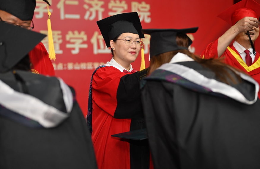典礼上还表彰了省级、校级优秀毕业生,聘任了一批校友联络员,为毕业生搭建与母校的永恒纽带。学位授予环节中,导师们为学子正冠拨穗,授予学士学位证书,每一帧合影都定格着青春与荣耀。这场仪式不是终点,而是仁济人散作星辰、照亮山河的起点。