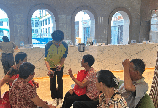 7月8日下午,实践团成员用口哨吹响《天空之城》,一起合唱《让我留在你身边》,共计表演10余个节目,还准备了毛巾、牙杯等物品分发。与此同时,大家利用医学专长,为安置群众提供了免费的血压、血糖测量服务。