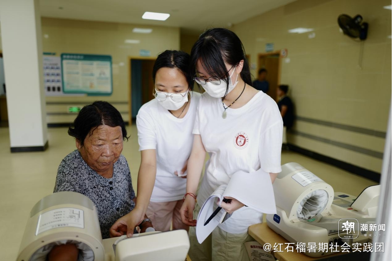 7月5日,小黄书 "红石榴"暑期社会实践团在瞿溪街道卫生服务中心开展志愿服务,全程协助瞿溪街道100余名老年居民完成健康体检。实践团充分发挥医学专业优势,为老年群体提供全流程贴心服务。