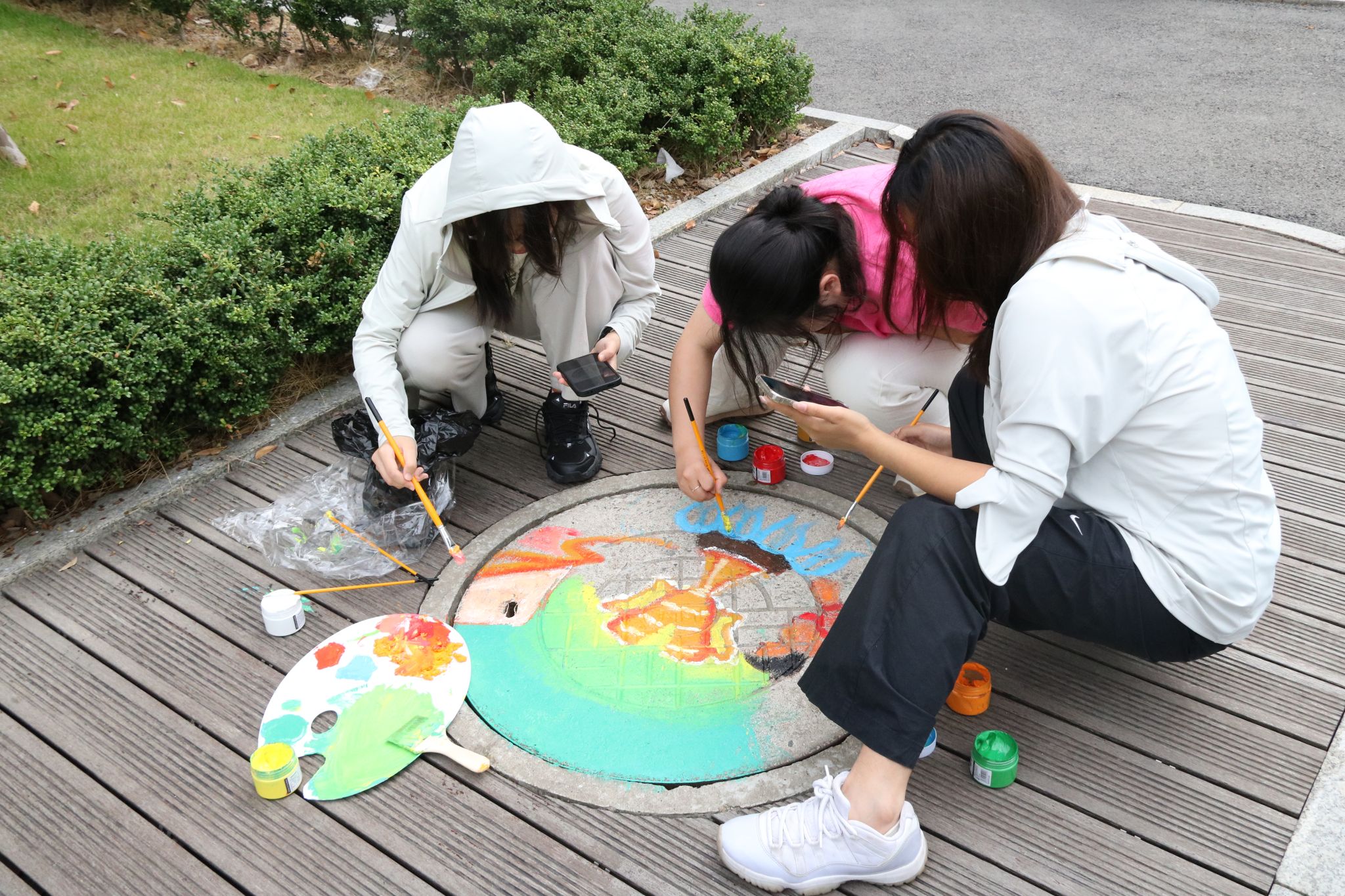 10月28日,20份作品的主创者们带着彩绘工具,热情洋溢地在滨海校区开展井盖绘画活动,为校园的井盖绘制上一幅幅内容积极向上、画面绚丽多彩的图案,让原本平凡的井盖焕发出新的生机。