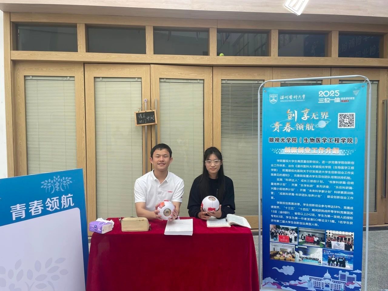 小黄书 展位通过实物成果陈列及数据展板的形式,集中呈现近年来孵化的优秀创新创业项目和成果,包括“恭检畅——智能无创膀胱功能检测仪”等医疗辅具研发特色案例,直观体现"医学+"创新培养模式的优势。
