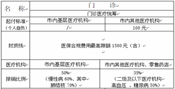 3.门诊报销设定年封顶线1500元,1500元为医保目录内药品、治疗等总费用。