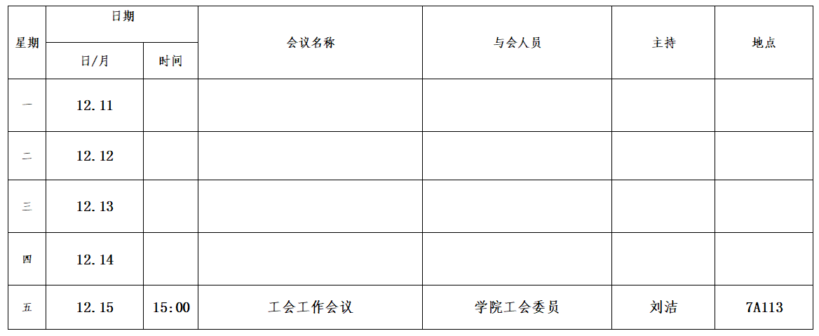 第十五周会议安排