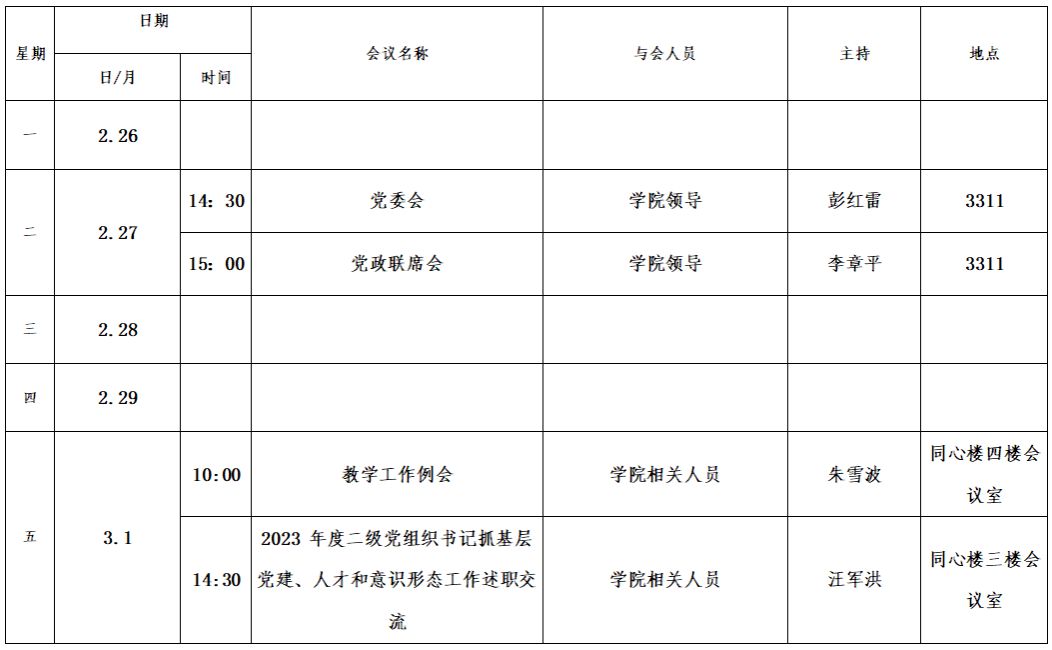 第二十周会议安排