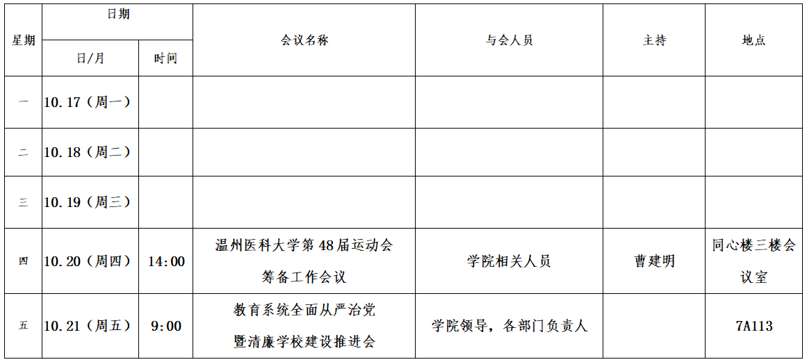 第七周会议安排