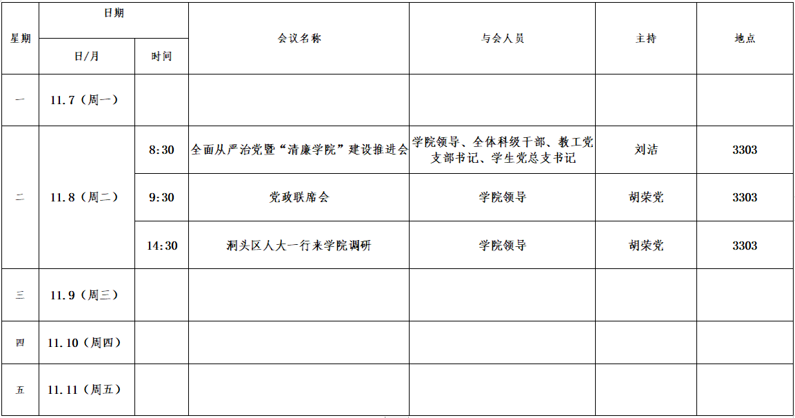 第十一周会议安排