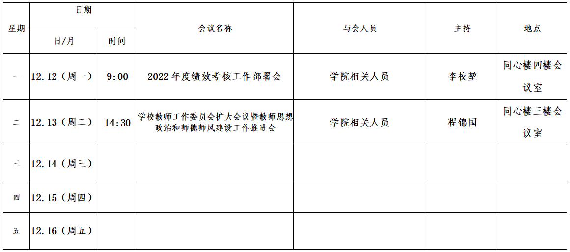 第十五周会议安排