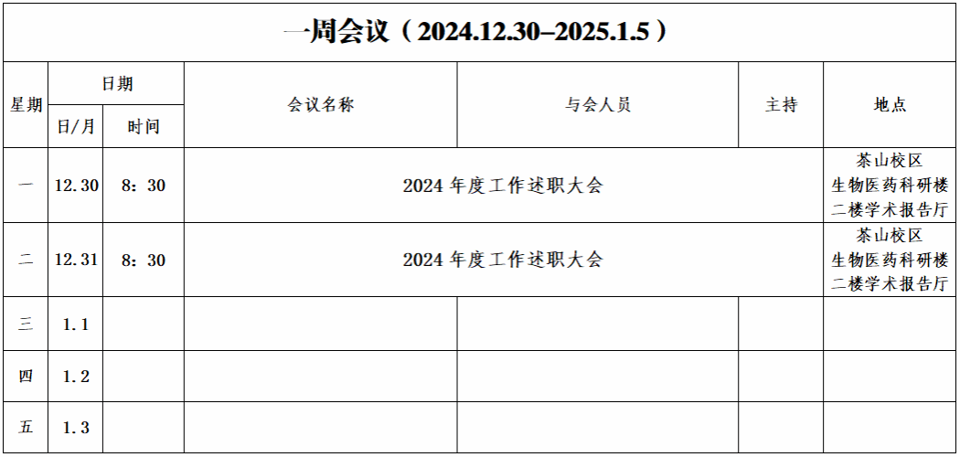 第十九周会议安排