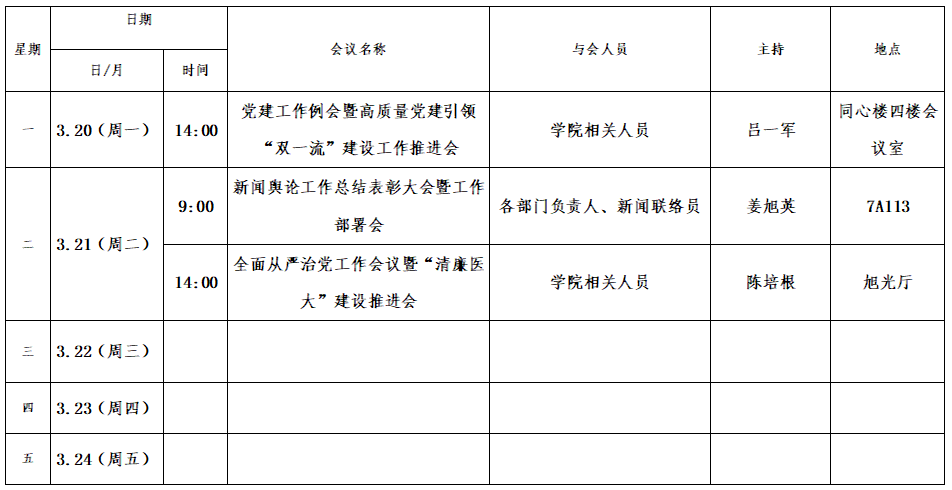 第五周会议安排