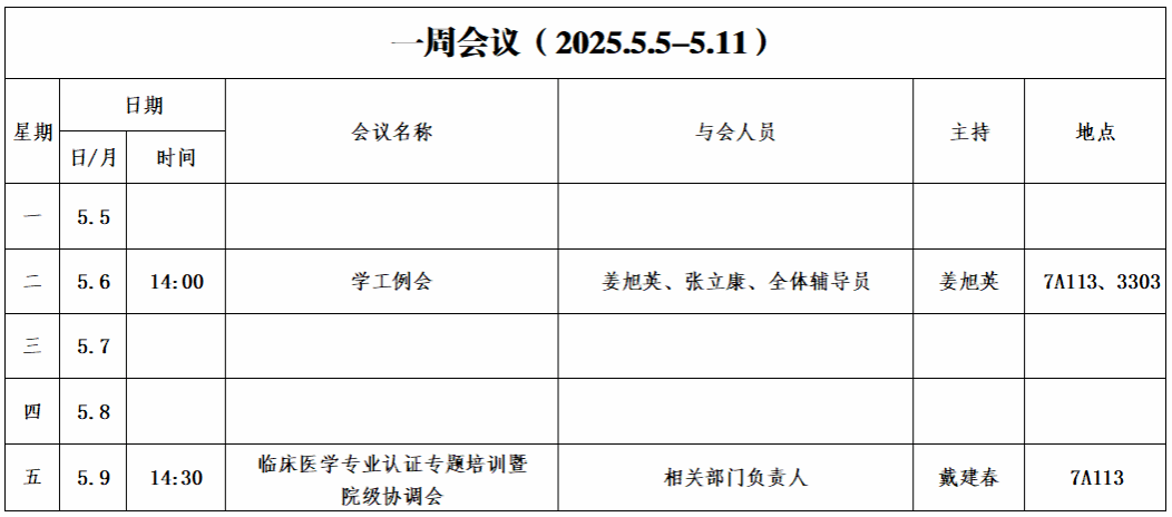 第十一周会议安排