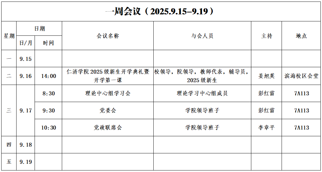 第一周会议安排