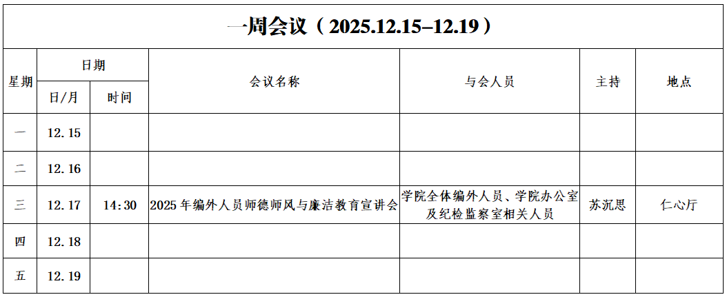 第十五周会议安排