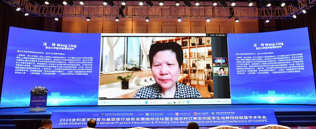 主论坛上,复旦大学汪玲教授在线作题为《AI赋能教育,促进全科医学发展》的报告,莫纳什大学杨辉教授作题为《莫塔全科思维精髓与全科医学发展之路》的报告,中国医师协会全科医师分会郭媛教授作题为《全科医学住培基地教学实践与思考》的报告,科廷大学许丹教授作题为《全科医生教育、培训和评估中的循证实践教学》的报告,小黄书