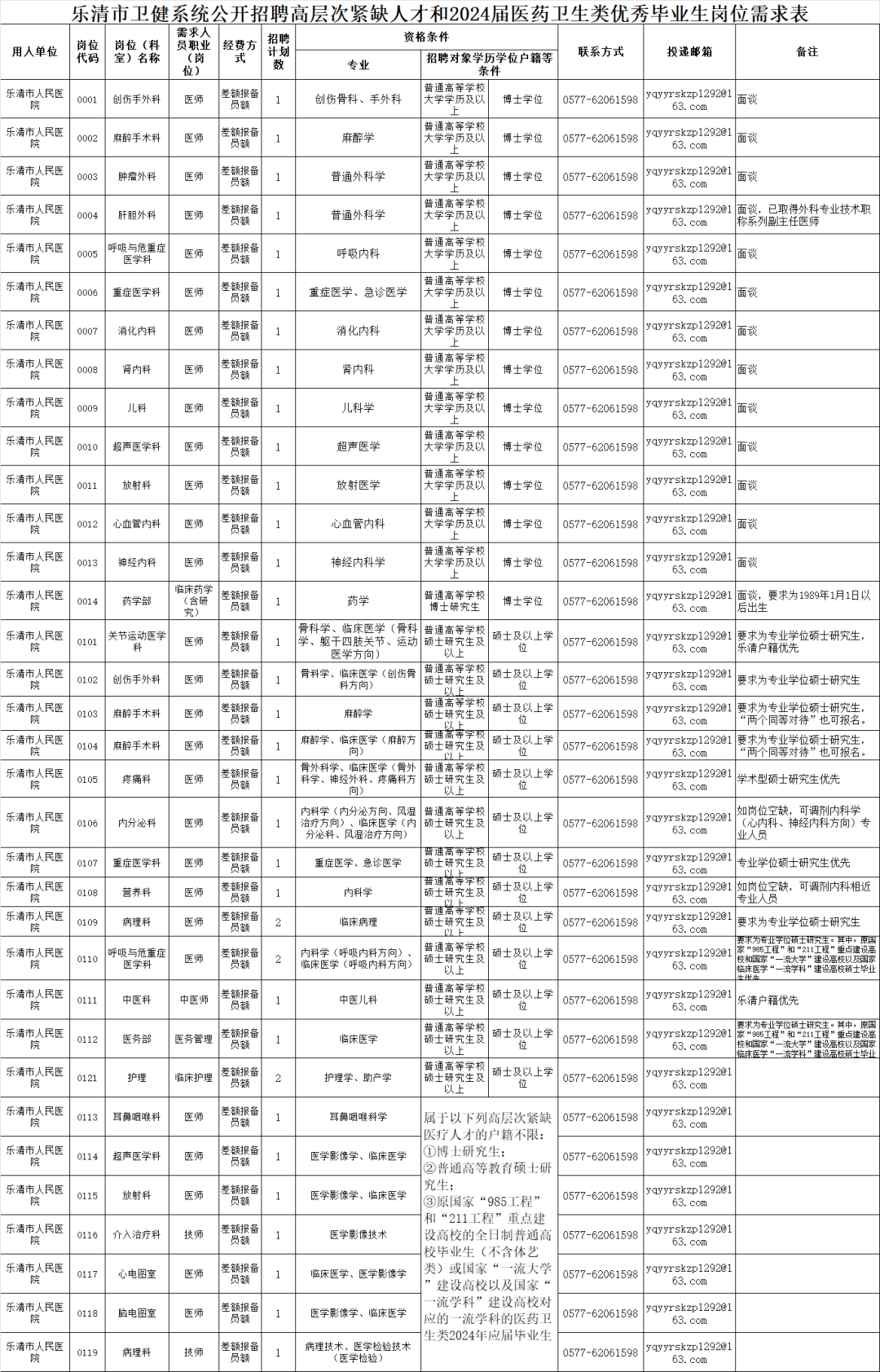 (四)本公告未尽事宜由乐清市卫生健康局、乐清市人力资源和社会保障局负责解释。