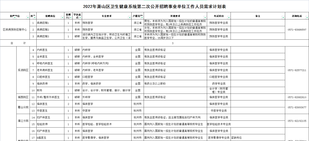 为进一步加强卫生健康人才队伍建设,加快推进我区卫生健康事业发展,满足人民群众的医疗卫生服务需求,根据医疗卫生机构人员需求情况,经研究,决定面向社会公开招聘萧山区卫生健康系统事业单位工作人员。