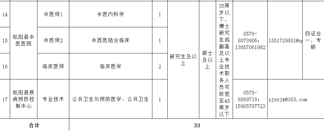 招聘计划33名,具体的招聘岗位(专业)、人数和资格条件详见招聘计划表。
