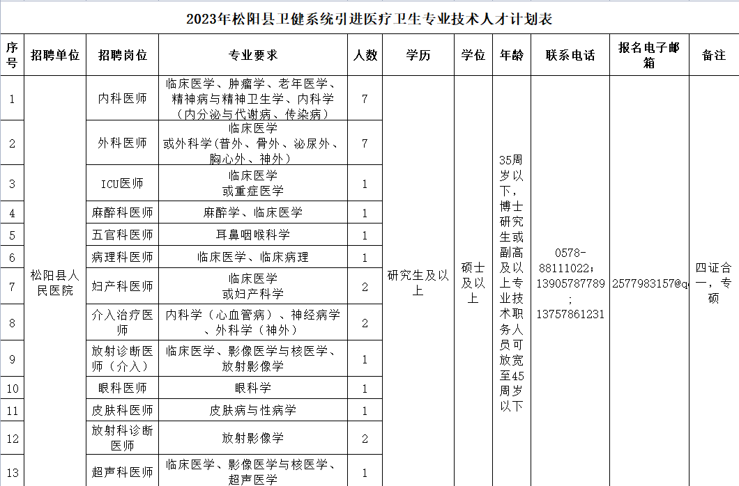 根据《事业单位人事管理条例》《浙江省事业单位公开招聘人员暂行办法》等有关规定,经松阳县人力资源和社会保障局核准,决定组织开展2023年上半年松阳县卫健系统引进医疗卫生专业技术人才工作。现将有关事项公告如下: