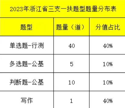 以下为23年浙江三支一扶题型题量分值占比