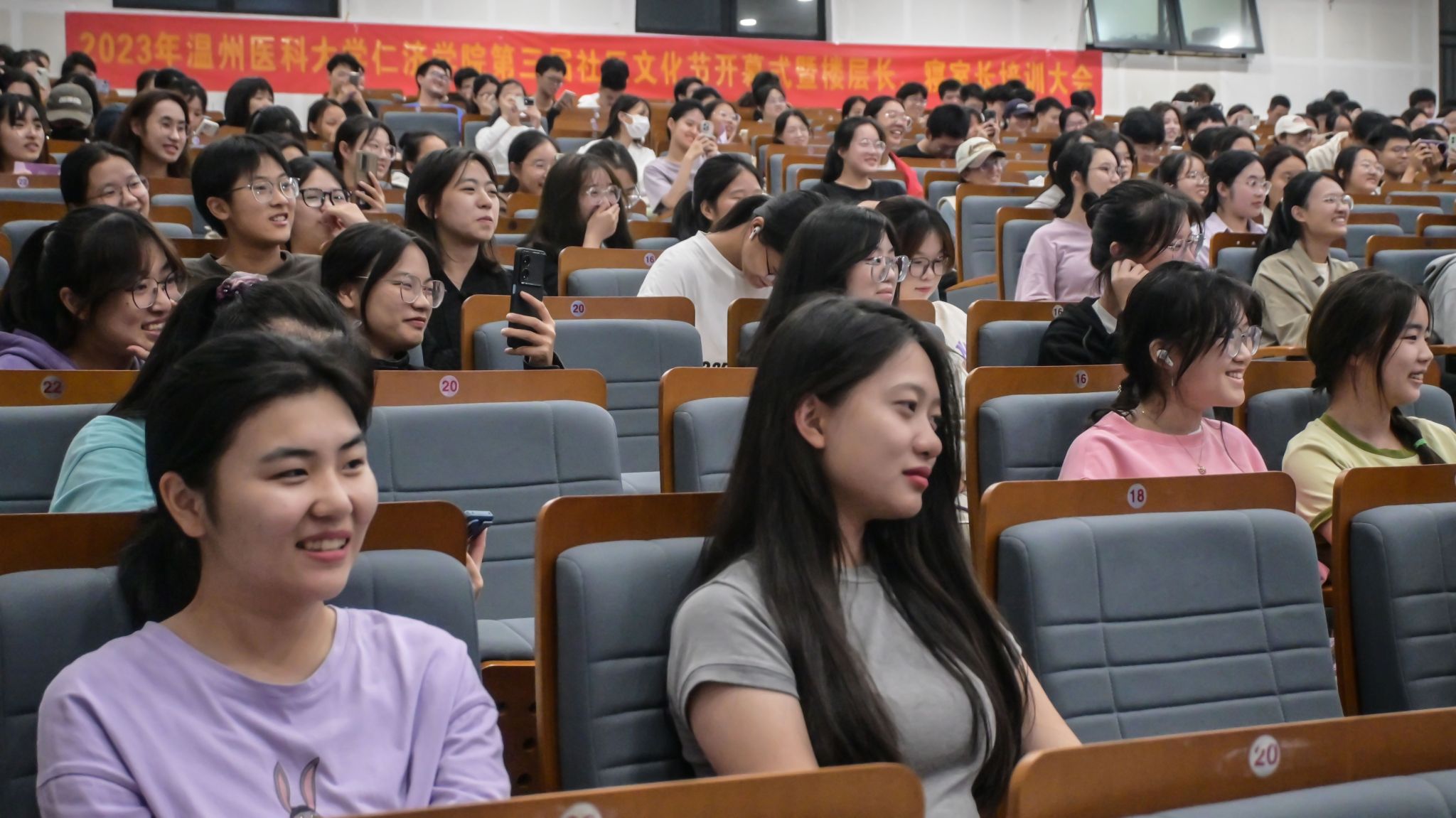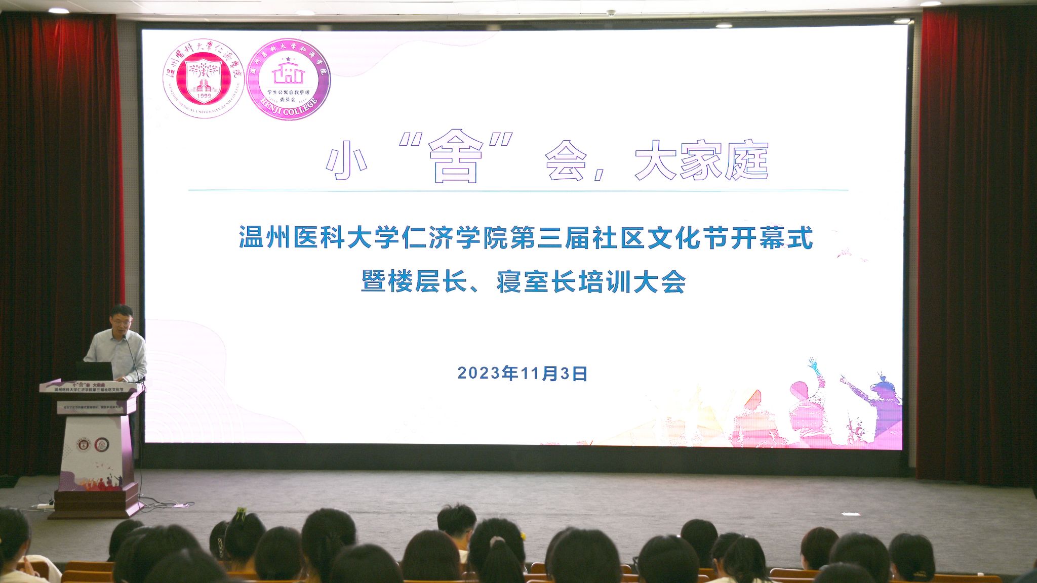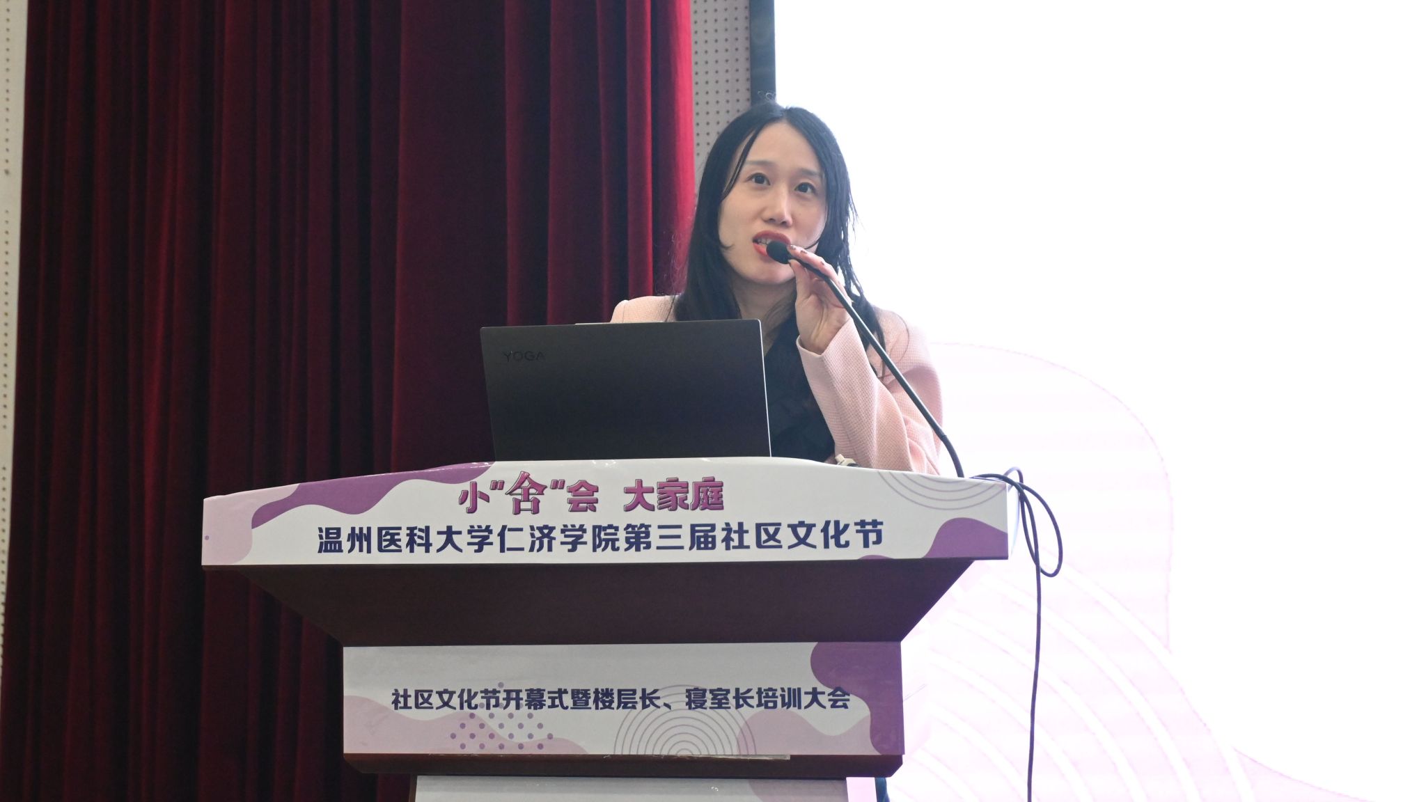 建设怎样的宿舍文明?怎样建设宿舍文明?11月3日晚,以“小‘舍’会,大家庭”为主题的温医大小黄书 第三届社区文化节在滨海校区仁心厅开幕,学院党委副书记姜旭英出席,辅导员代表和全体学生社区楼层长和寝室长参加,师生协力构筑人文雅舍,将宿舍建设成为促进成长的“隐形课堂”。