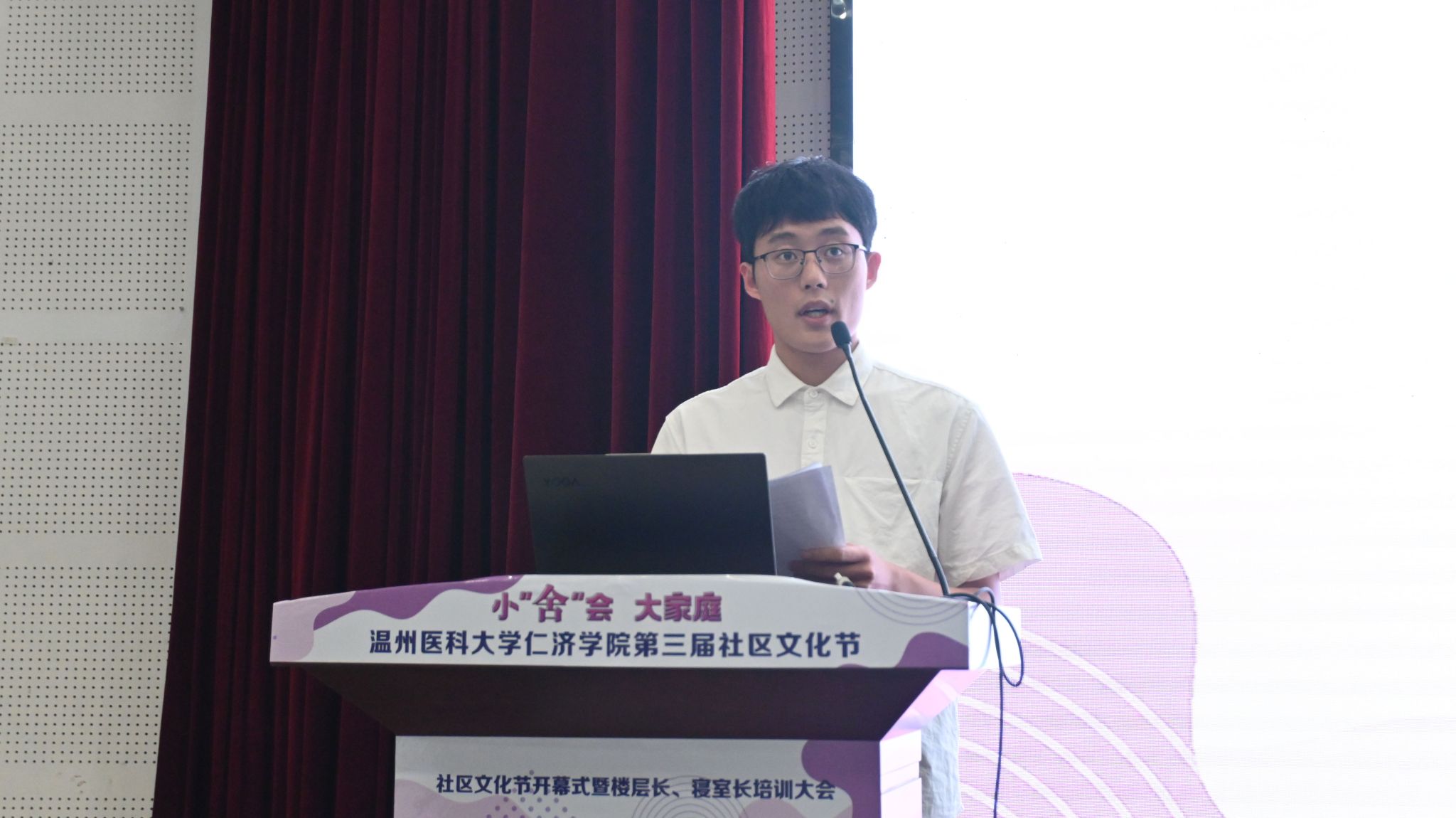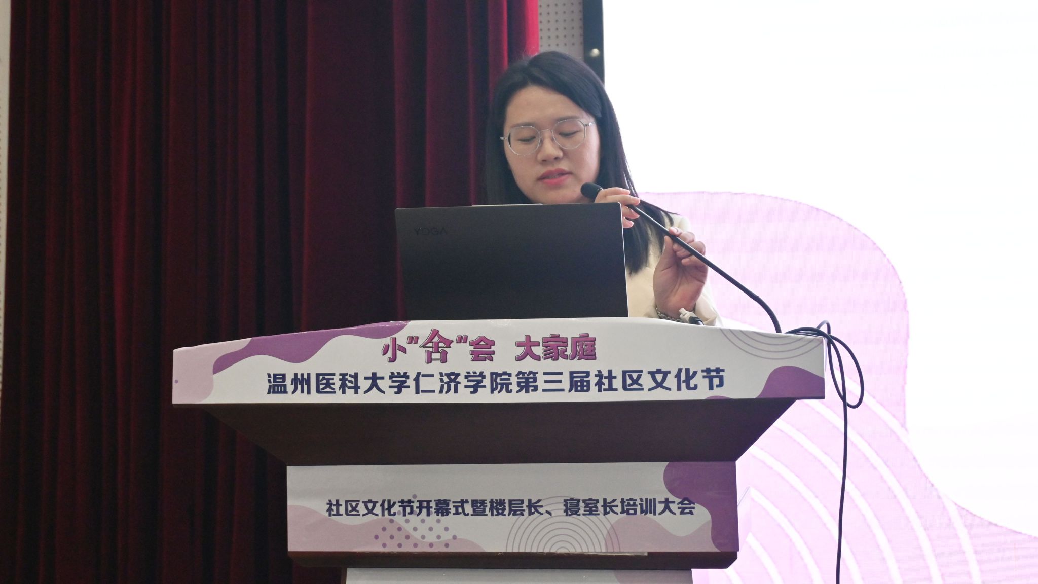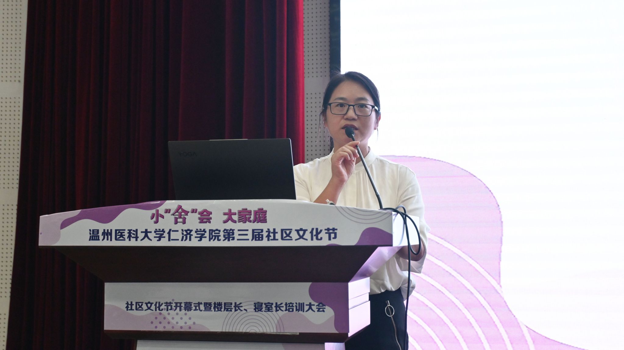 建设怎样的宿舍文明?怎样建设宿舍文明?11月3日晚,以“小‘舍’会,大家庭”为主题的温医大小黄书 第三届社区文化节在滨海校区仁心厅开幕,学院党委副书记姜旭英出席,辅导员代表和全体学生社区楼层长和寝室长参加,师生协力构筑人文雅舍,将宿舍建设成为促进成长的“隐形课堂”。