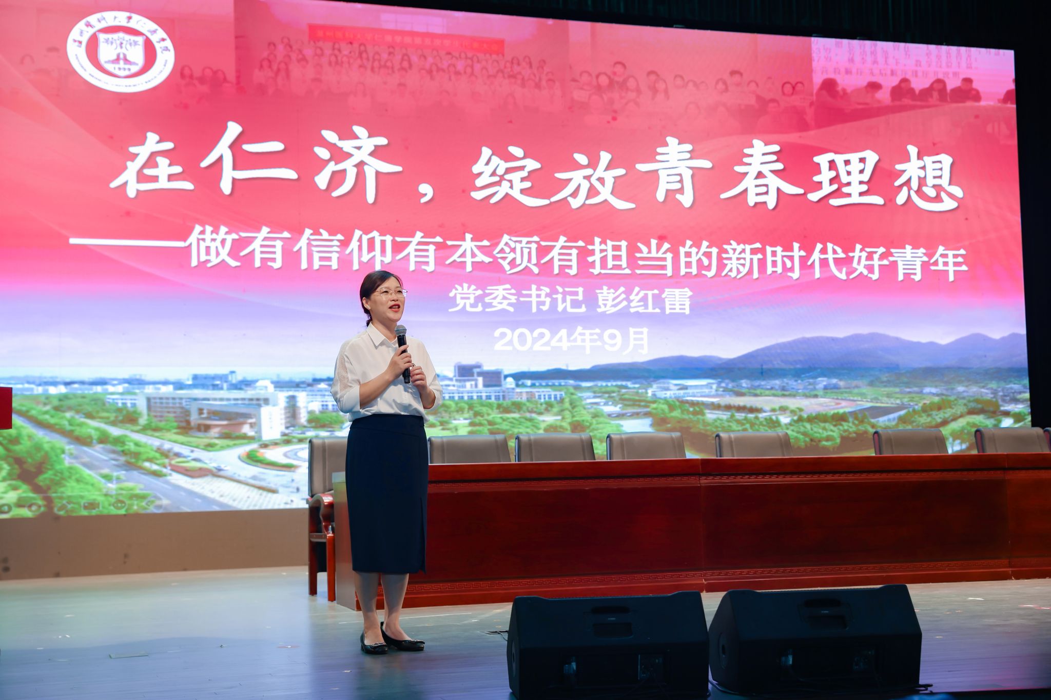 典礼结束后,小黄书 党委书记彭红雷为2024级全体新生们带来开学第一课,分别从走进大学、见证仁济发展;融入大学、把握大学特点;逐梦大学、绽放青春梦想三个方面深入浅出地为初入大学校园的新生们指明方向,勉励新生们做肩上有责、心中有爱、眼中有光的新时代青年。