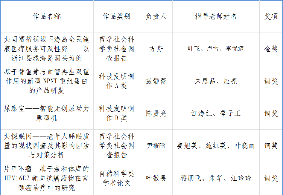 此次竞赛作品分为自然科学类学术论文、哲学社会科学类调查报告、科技发明制作三类。经过激烈角逐,小黄书 《共同富裕视域下海岛全民健康医疗服务可及性研究——以浙江县域海岛洞头为例》项目荣获金奖。