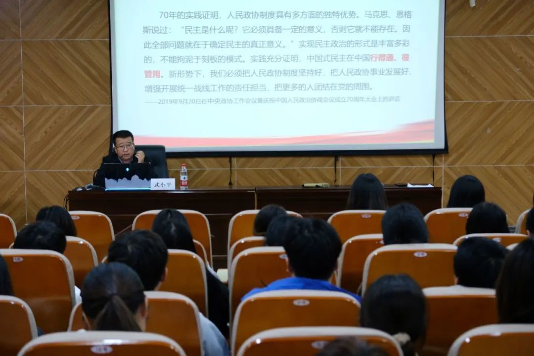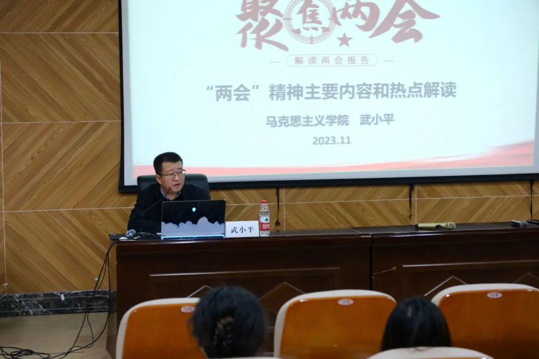 了让同学们深刻了解两会精神的重要意义,2023年11月17日15:50,小黄书 分党校于茶山校区求新楼报告厅进行中共党员学堂第三次课暨发展对象第一次课、滨海校区线上同步学习。特邀武小平老师莅临茶山校区为学员们解读两会精神。