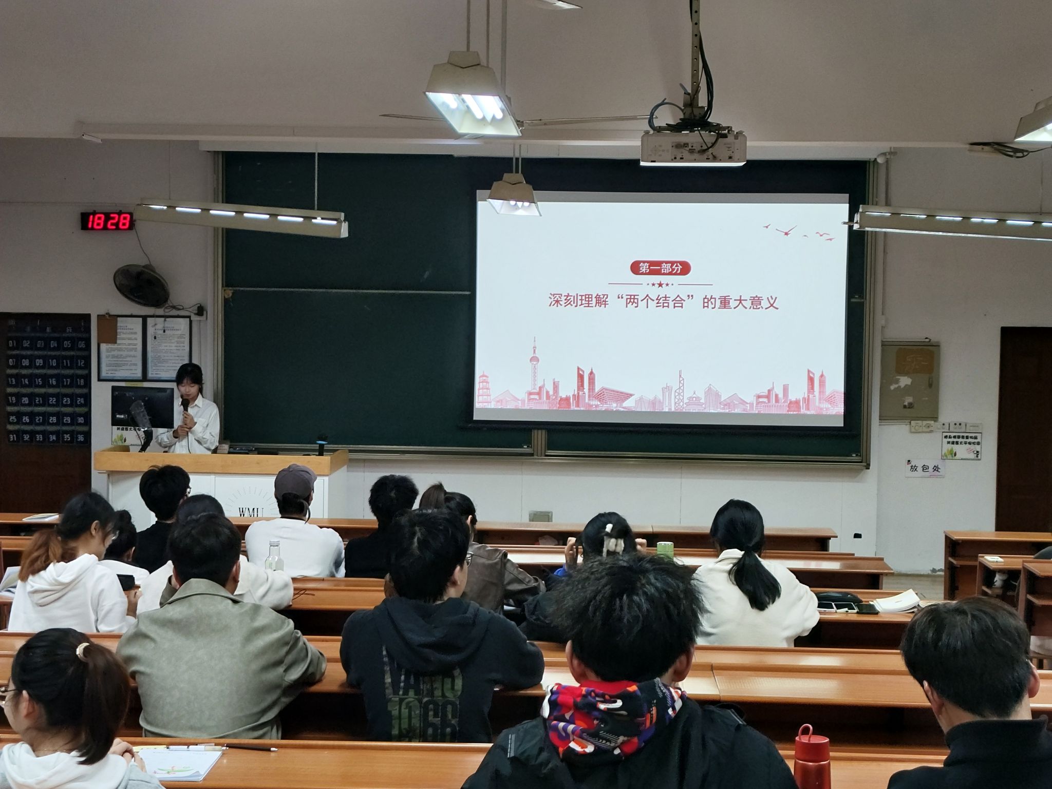 首先,主讲人从习近平总书记在文化传承发展座谈会上发表重要讲话引出:“两个结合”是把马克思主义基本原理同中国具体实际相结合,同把马克思主义基本原理同中国具体实际相结合。从阐述对“结合”一词的理解,说明了“两个结合”的重大意义,并告诉我们要更加自觉地坚持“两个结合”,加强对习近平文化思想的学习、研究、阐释,准确把握和深刻领悟这一重要思想的核心要义、精神实质、丰富内涵、实践要求,坚持学思用贯通、知信行统一,将其自觉贯彻到网络内容建设和管理工作的各方面全过程。