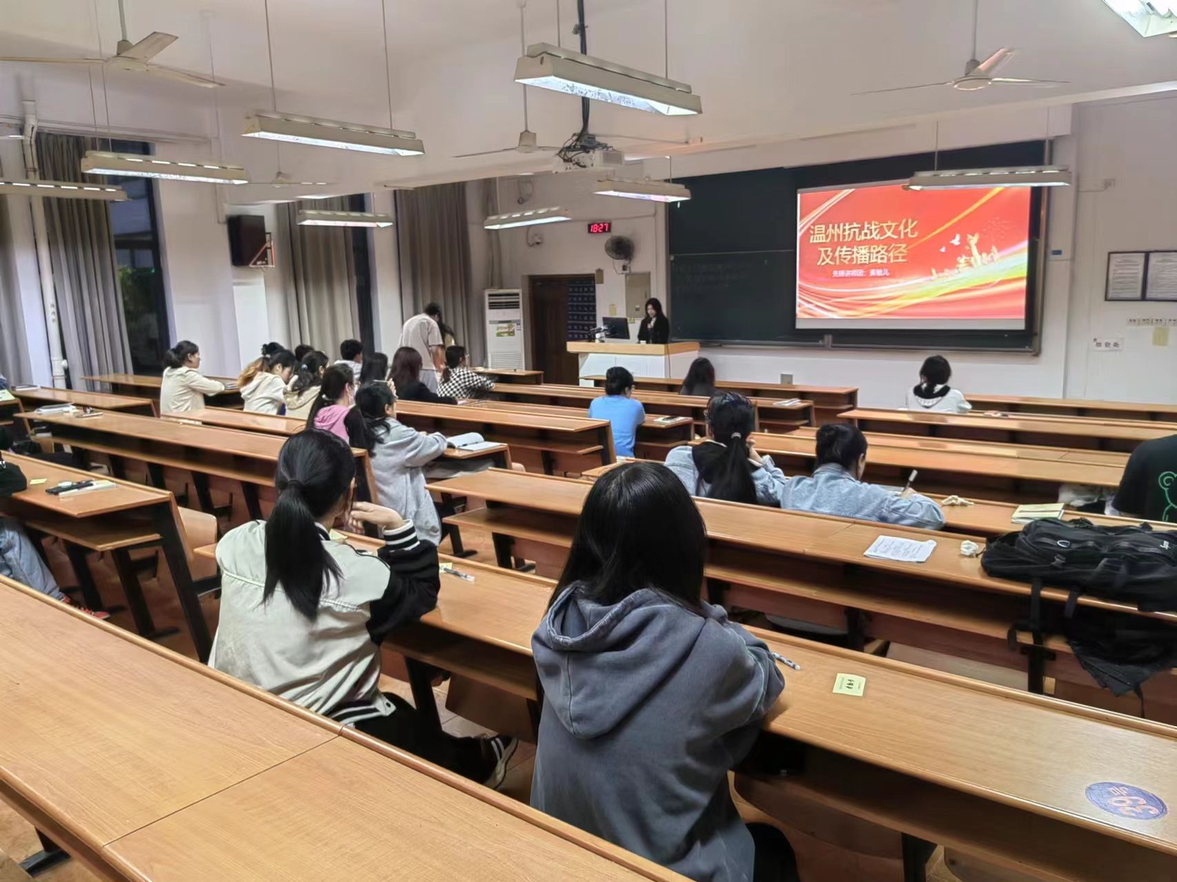 2024419日晚630,党建服务与人才培训中心在茶山校区开展了主题为“温州抗战文化及传播路径”的高峰论坛活动。主讲人黄敏儿从“从北平到浙南”、 “从歌咏到书刊”、 “从旧日看今朝”三个部分进行讲述。