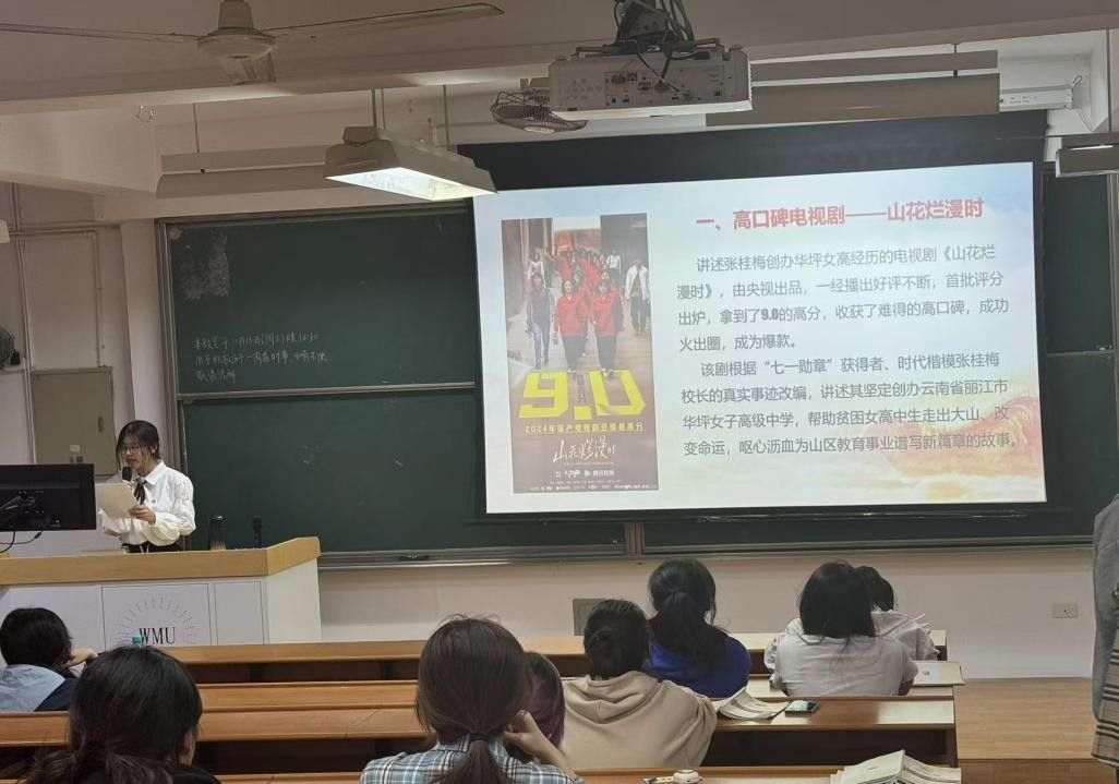 主讲人以“七一勋章”获得者、时代楷模张桂梅校长的真实事迹改编的高口碑电视剧《山花烂漫时》进行引入,讲述其坚定创办云南省丽江市华坪女子高级中学,帮助贫困女高中生走出大山、改变命运,呕心沥血为山区教育事业谱写新篇章的故事。张桂梅同志把全部身心投入到边疆民族地区教育事业和儿童福利事业,创办了全国第一所全免费女子高中,是华坪儿童之家130多个孤儿的“妈妈”。张桂梅老师办校过程中克服了缺少经费,没有学生,没有老师,缺乏经验等一系列困难,而且重大持续的压力让她患上多种疾病,而她仍然坚守在岗位上