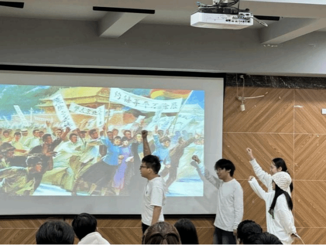 各小组通过配音,情景剧的形式对中国不同时期的历史进行了生动的演绎。 从抗日战争到改革开放不同小组通过不同的演绎形式让这一幅幅红色画卷在我们面前缓缓展开,让我们更加直观的了解到那段红色的历史。